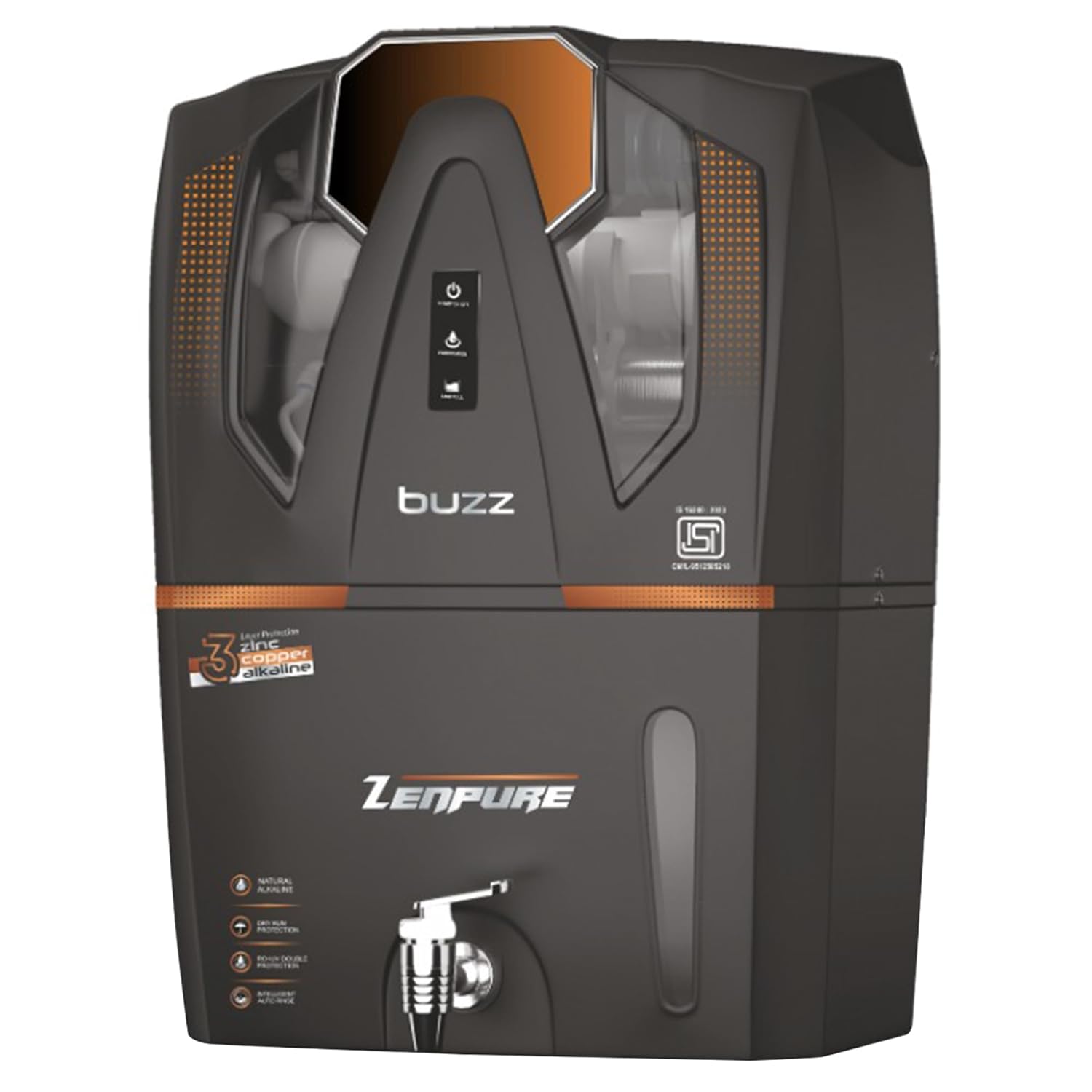 Zenpure Aqua Buzz-New LPH Copper Alkaline RO Water Purifier + RO + UV + UF + MINERAL ENHANCER with Prefilter, Black, with 10 Stage Filtration, ISI Marked